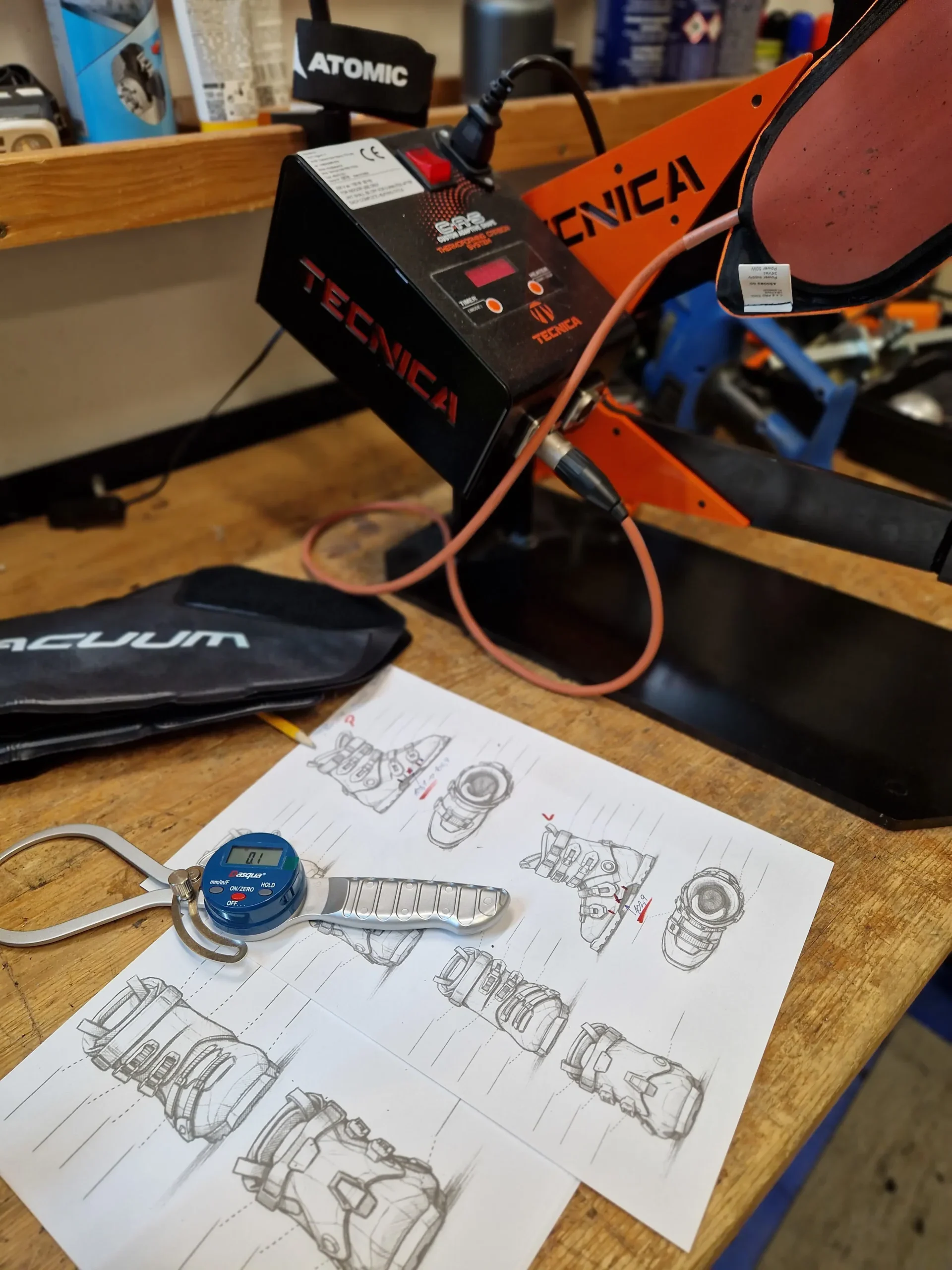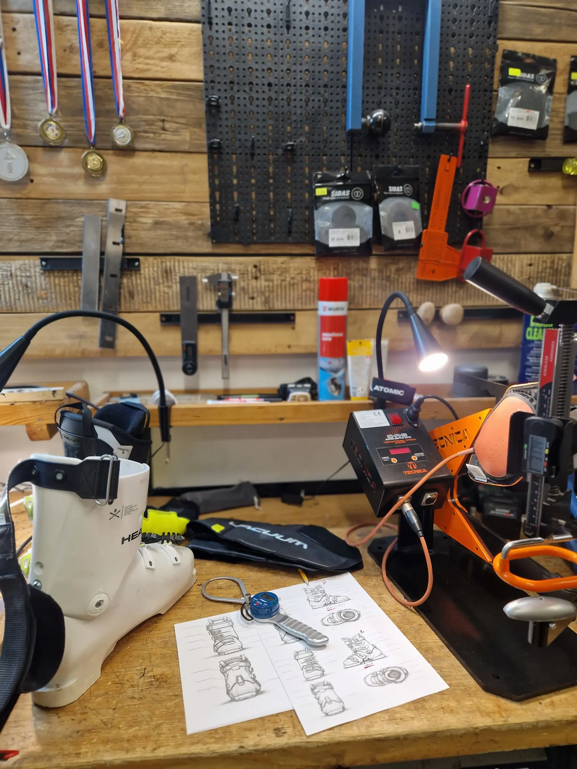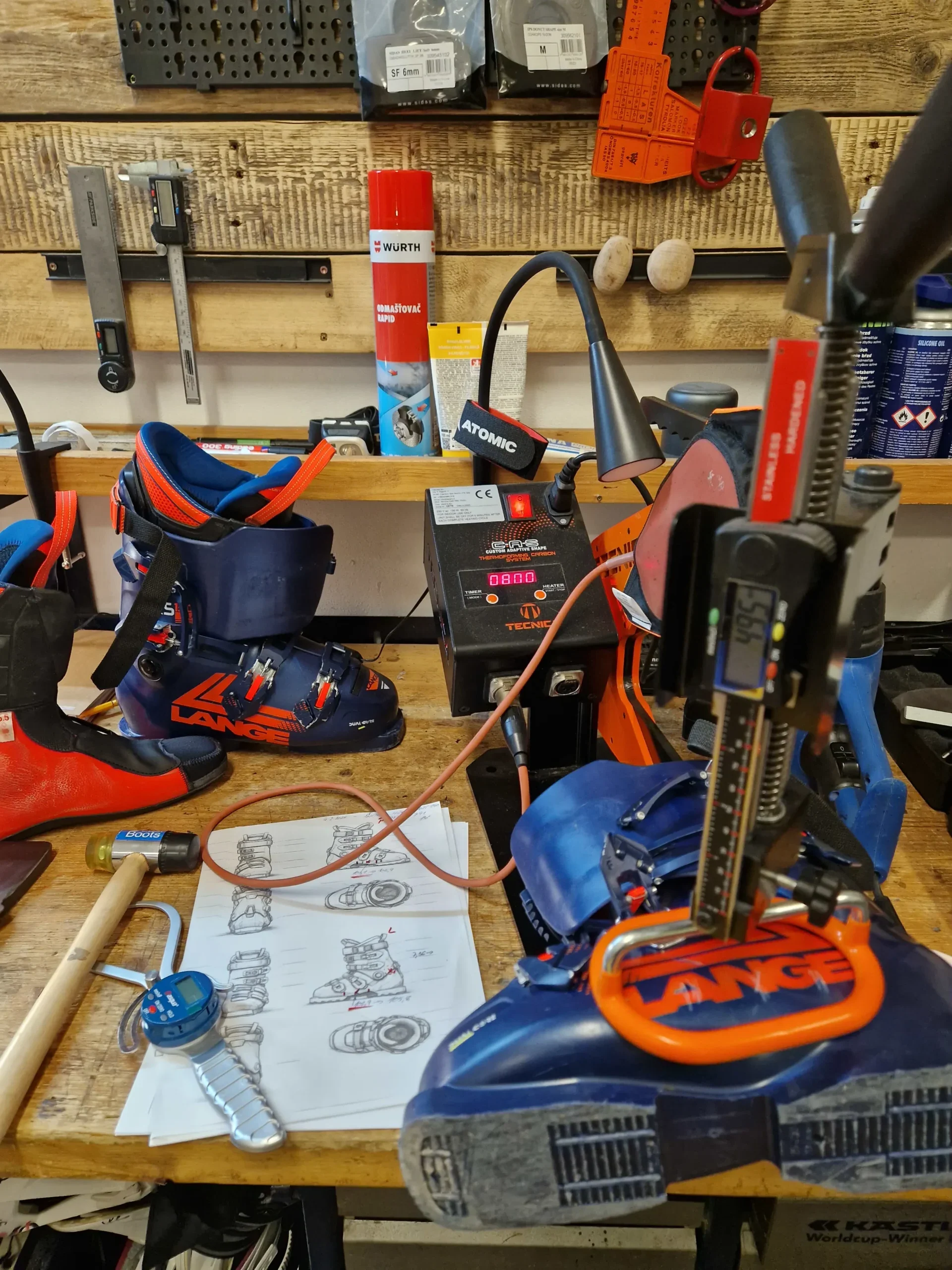 Provádíme lokální tepelné úpravy skeletů lyžařských bot v problematických partiích, tepelné tvarování v peci, individuální úpravy a tepelné tvarování vnitřních botiček, instalece doplňků a anatomických vložek.